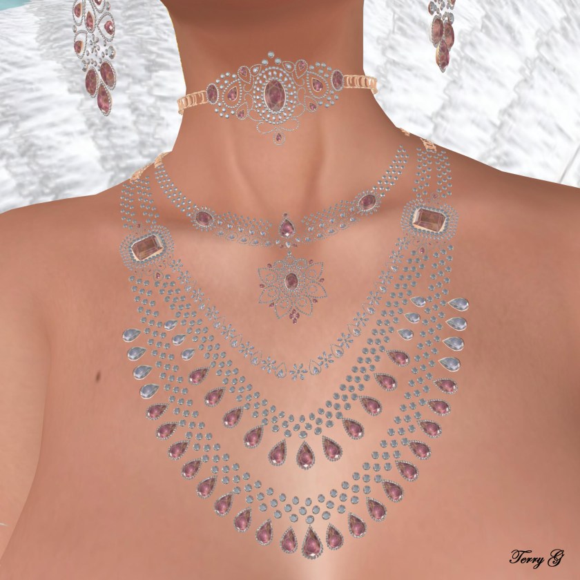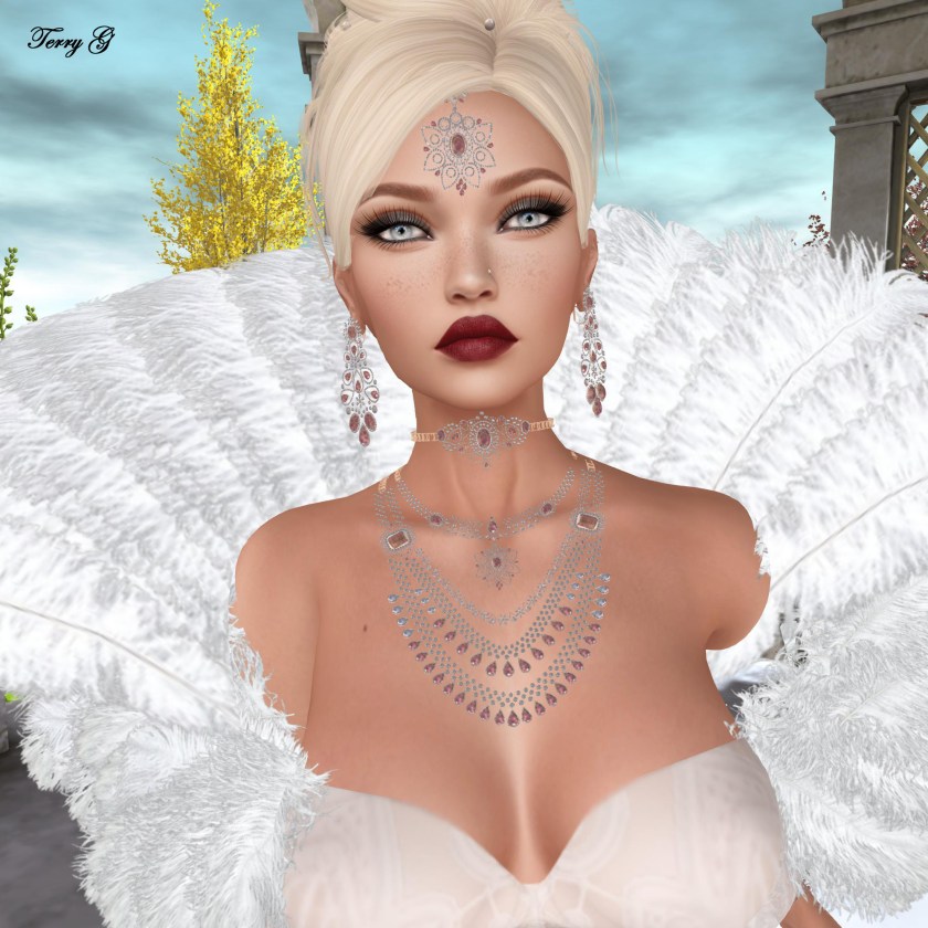 The Luce Malati Jewerly set includes a beautiful Choker, two Necklaces, Bracelets, Earrings, Ring & tikka, and is controlled by our easy Moondance HUD
