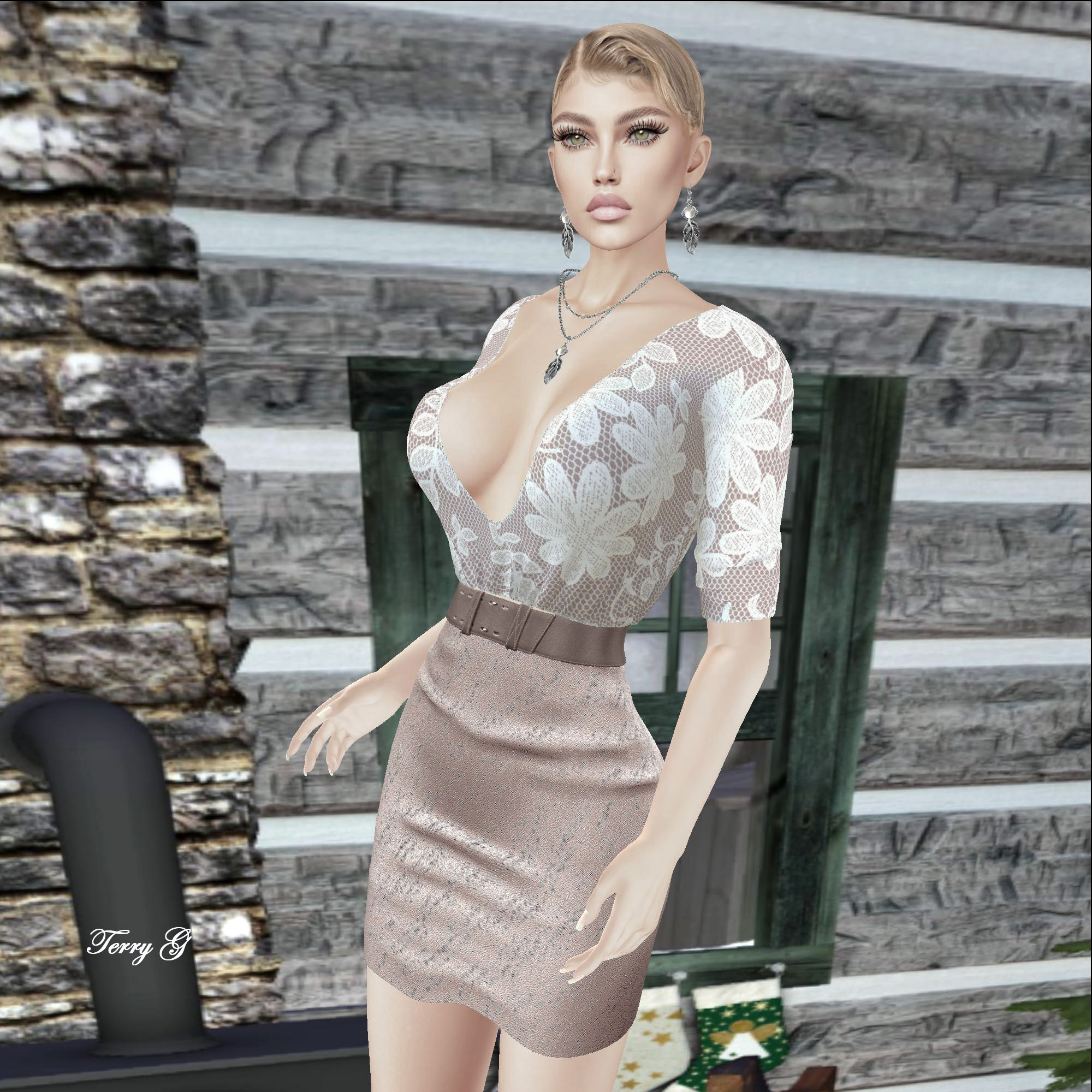 Outfit: LUXE Paris SKINSOFT Blouse and Skirt from LUXE Paris Fashion House on Bao-Mainstore